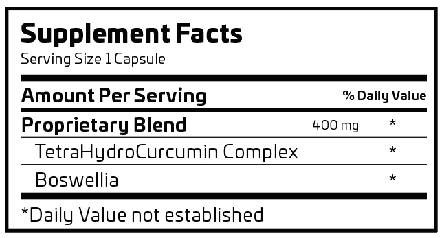 Matriz de fibra dextrina gamma CyLoc ™, cápsula de hipromelosa (derivada de la celulosa), isomalta, celulosa, laurato de calcio, leucina y amilasa vegetal. El complejo TetrahidroCucumin está especialmente tratado con una trampa molecular de matriz Cyloc ™ combinada con la tecnología pendiente de patente del agente de liberación DexKey ™ para aumentar la solubilidad y la biodisponibilidad.